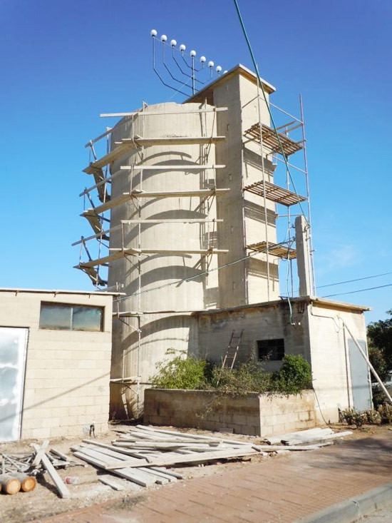 Wasserturm in Shavei Zion wurde renoviert Die große Menora ist renoviert, der Turm frisch gestrichen und die Gartenanlage neu angelegt