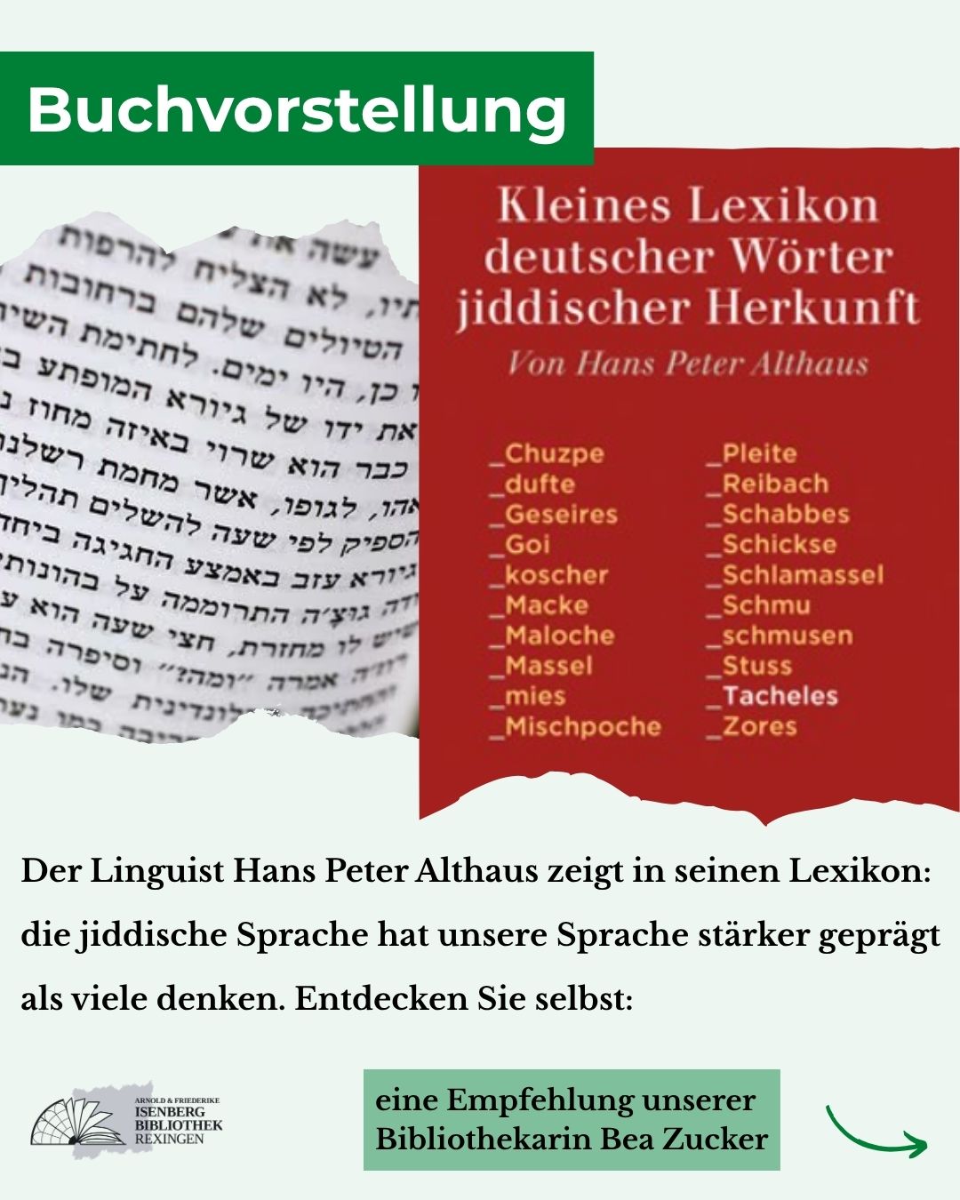 Dieses Lexikon und noch andere Bücher, die sich mit der jiddischen Sprache beschäftigen, finden Sie in der Arnold und Friederike Isenberg Bibliothek in Rexingen.