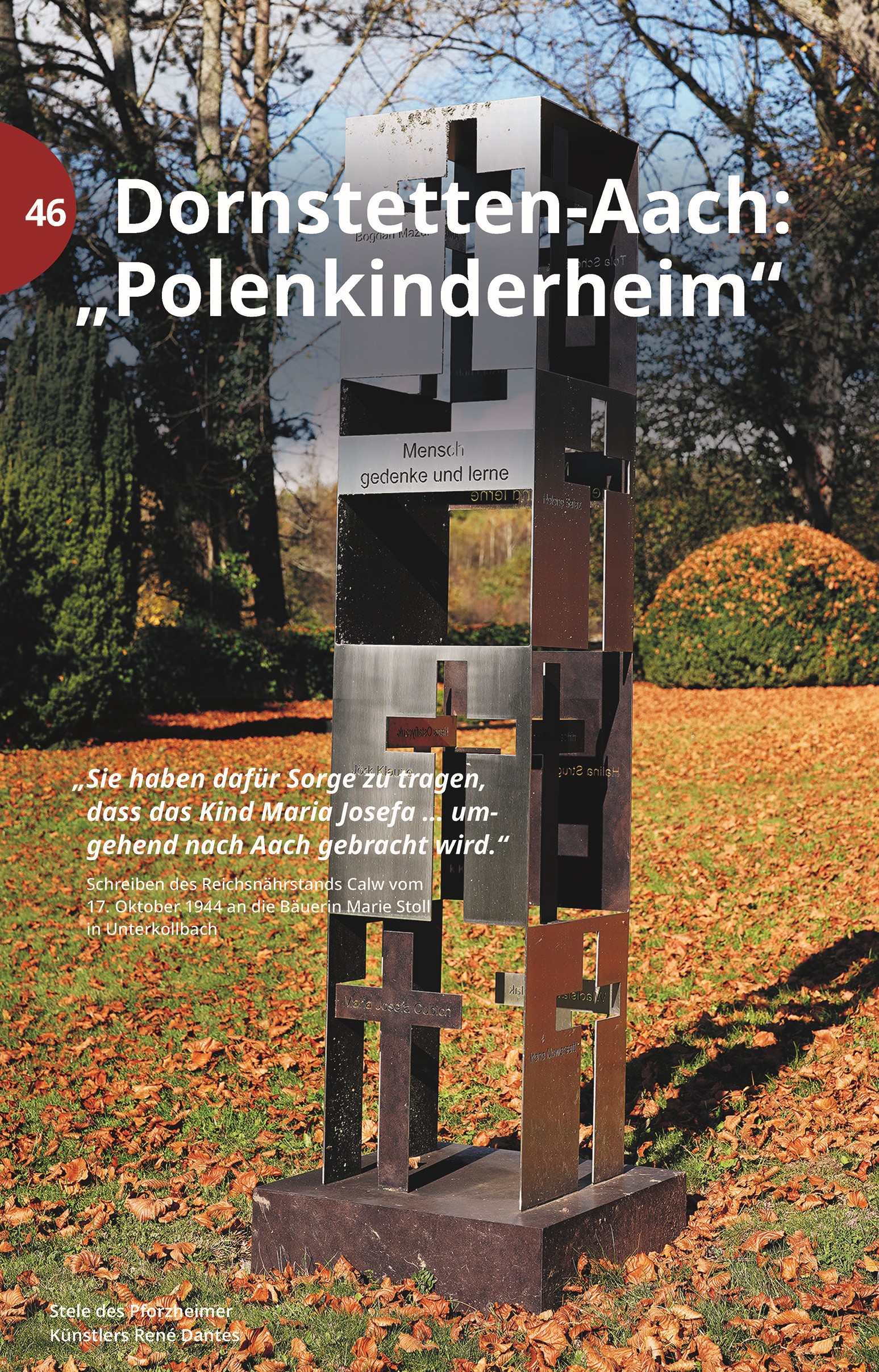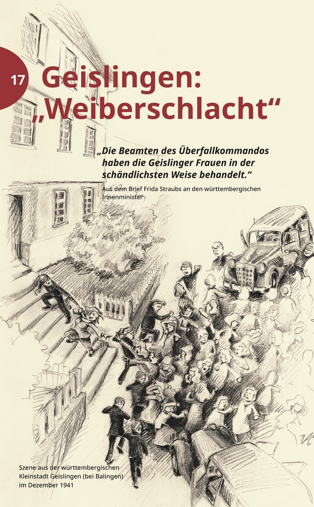 Des Weiteren erinnert der Band auch an Ereignisse wie die „Geislinger Weiberschlacht“, als sich rund 200 Frauen aus Geislingen bei Balingen vor dem Rathaus versammelten, um gegen die Schließung des katholischen Kindergartens zugunsten eines Kindergartens der „Nationalsozialistischen Volkswohlfahrt“ zu demonstrieren. Erwähnung findet auch das Grab der Sinti-Familie Reinhard in Burladingen, das den Blick auf das lange Zeit kaum erforschte Schicksal der Sinti und Roma während der NS-Zeit lenkt, ebenso wie das im Volksmund so genannte „Polenkinderheim“ in Dornstetten-Aach. In dem ehemaligen Schuppen wurden Neugeborene und Säuglinge, die von ihren polnischen, russischen und ukrainischen Müttern – allesamt Zwangsarbeiterinnen - weggenommen wurden, unter menschenunwürdigen Bedingungen untergebracht. Diese Kinder starben dann kurze Zeit später mangels ausreichender Ernährung und Fürsorge. Erst 2019 sorgte eine Gruppe von engagierten Bürgerinnen und Bürgern dafür, dass diesen Kindern ein würdiges Denkmal gesetzt wurde. Solche und noch viele andere Ereignisse und Orte machen dieses Buch zu einem besonderen Führer durch die Region Gäu-Neckar-Alb zum Thema „Spuren des Nationalsozialismus“ und damit aber auch zu einem Wegweiser gegen das Vergessen.
