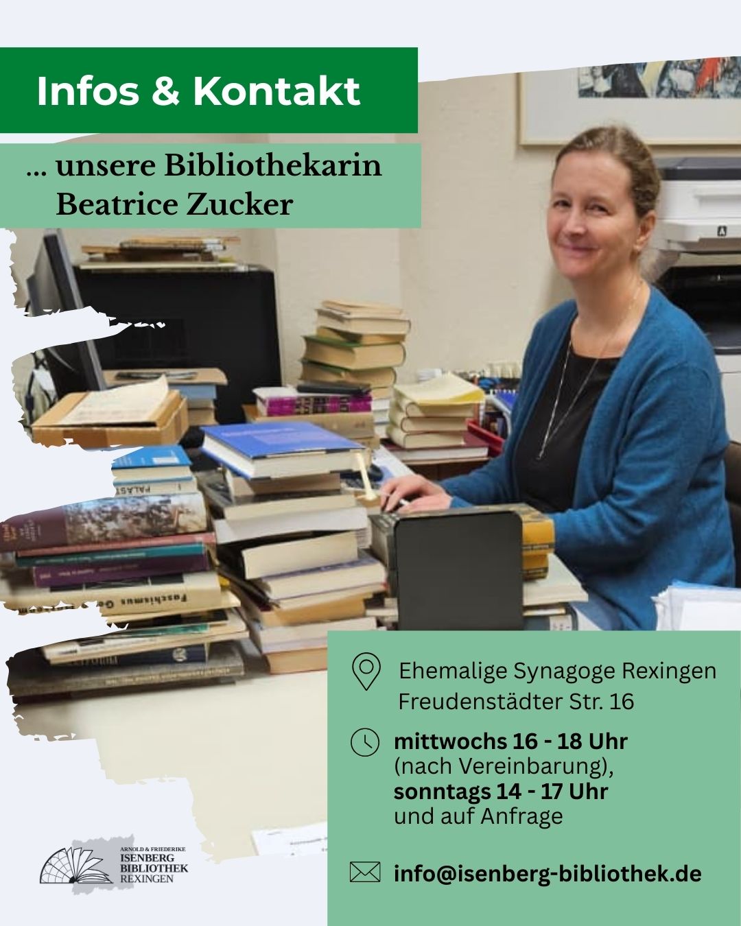 Mein Name ist Bea Zucker und seit 2021 bin ich mit der Erfassung von Titeln für die Arnold und Friederike Isenberg Bibliothek in der ehemaligen Synagoge in Rexingen beschäftigt. An dieser Stelle möchte ich Euch und Ihnen künftig Bücher aus den verschiedenen Abteilungen unserer Bibliothek vorstellen.