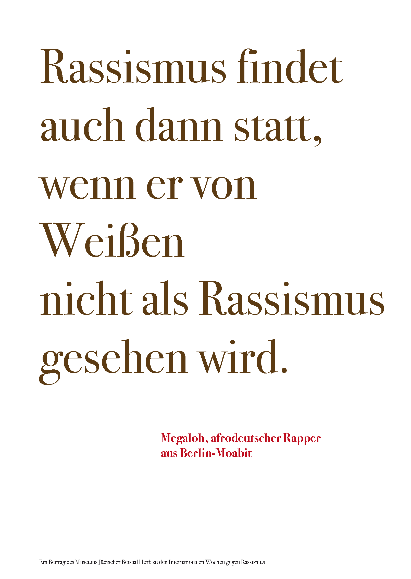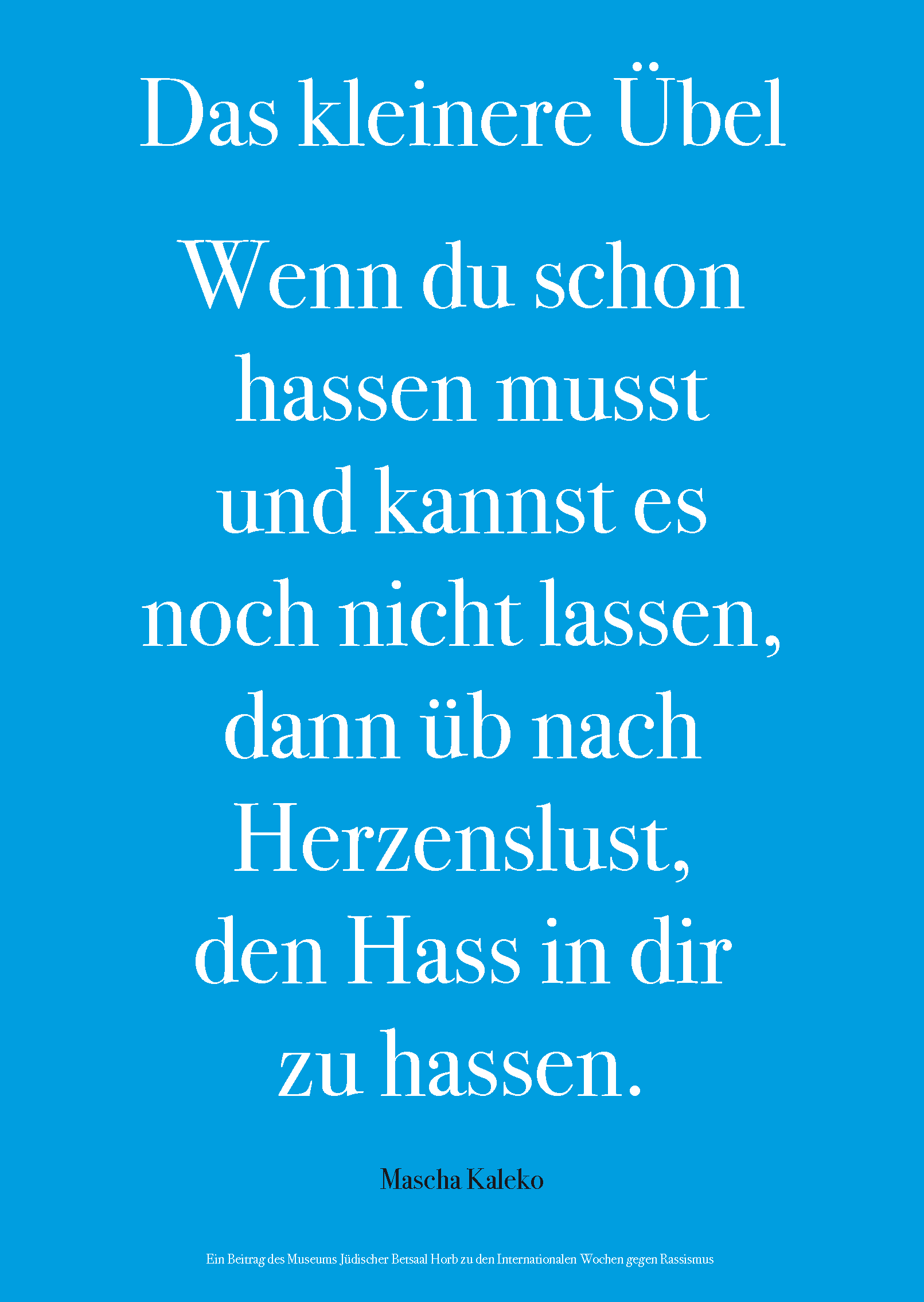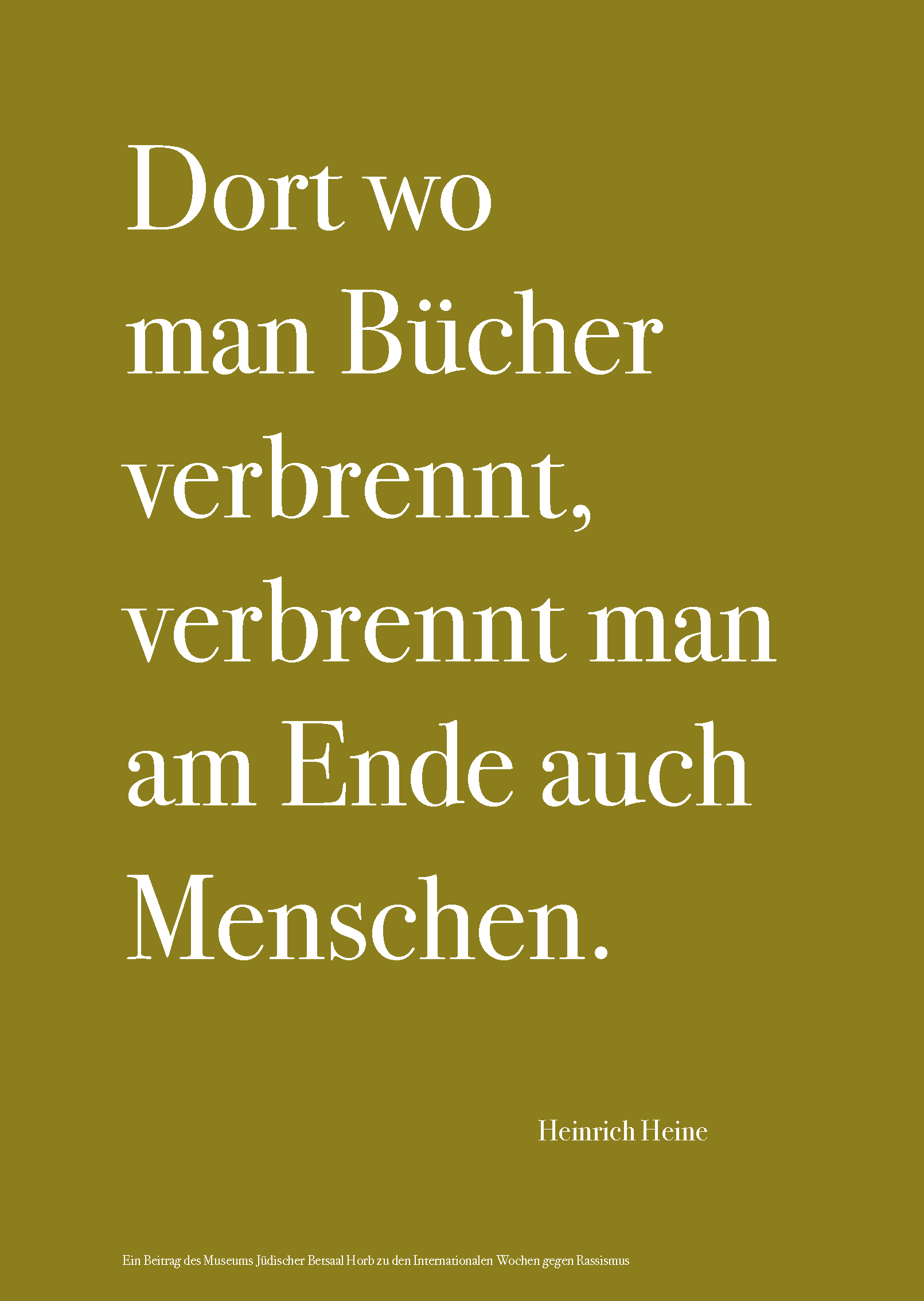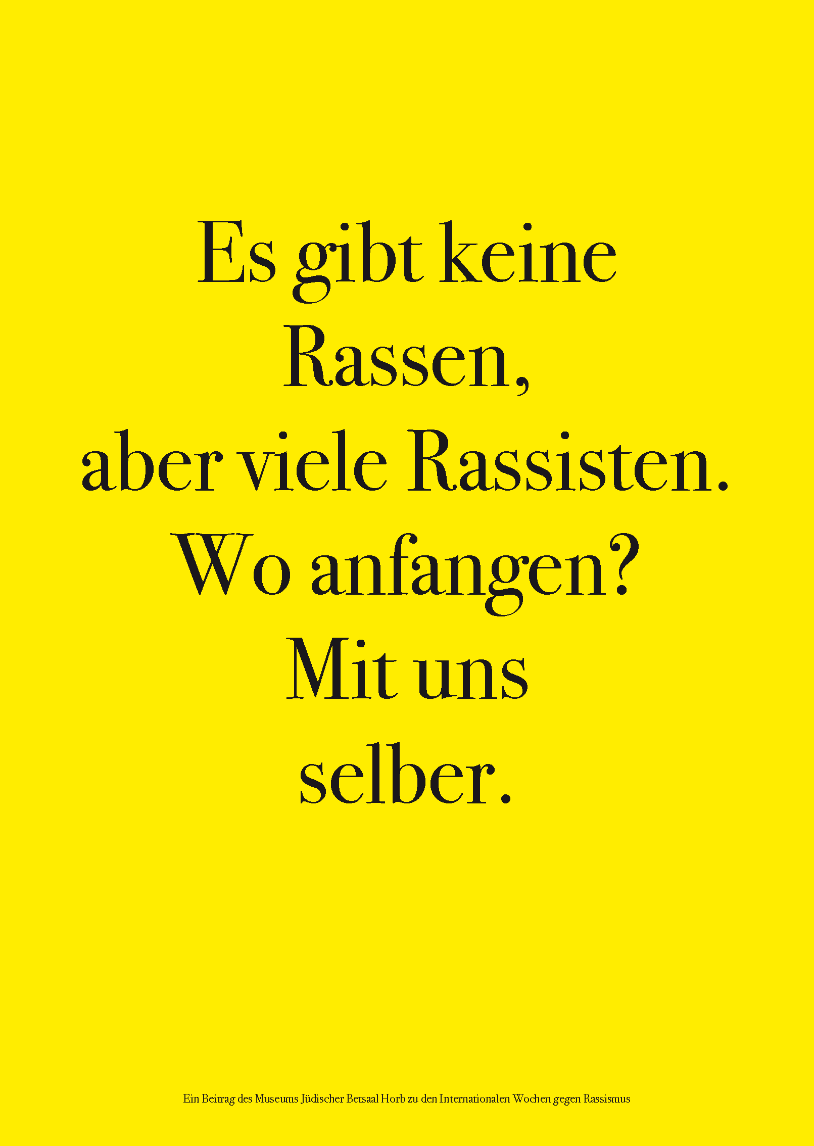Zu den internationalen Wochen gegen Rassismus vom 15. bis 28. März 2021 entwarf das Team des Museums Jüdischer Betsaal Horb 15 Schriftplakate.