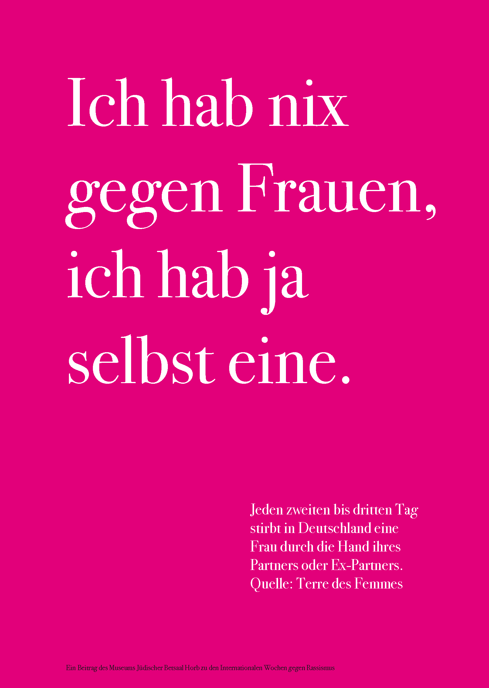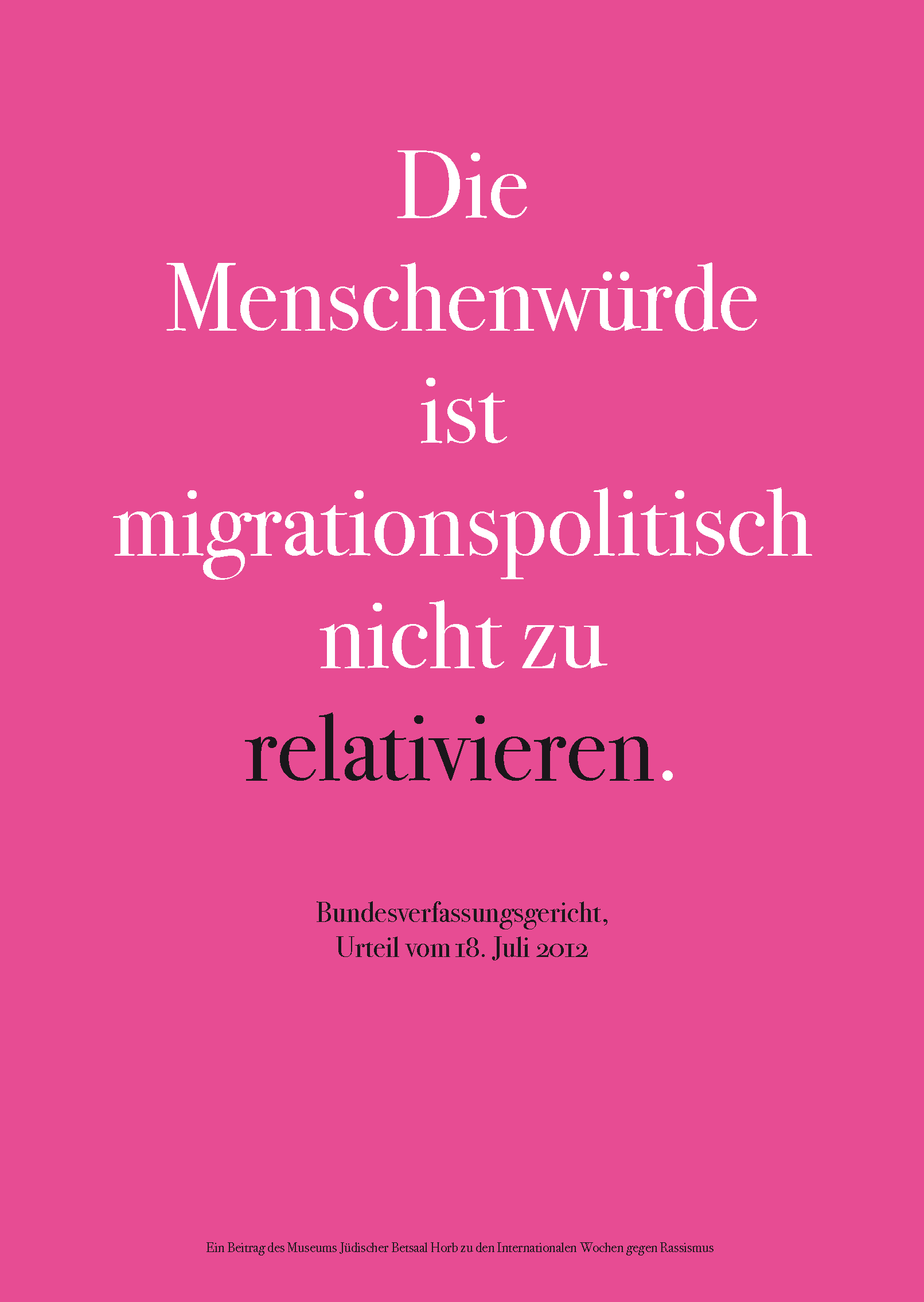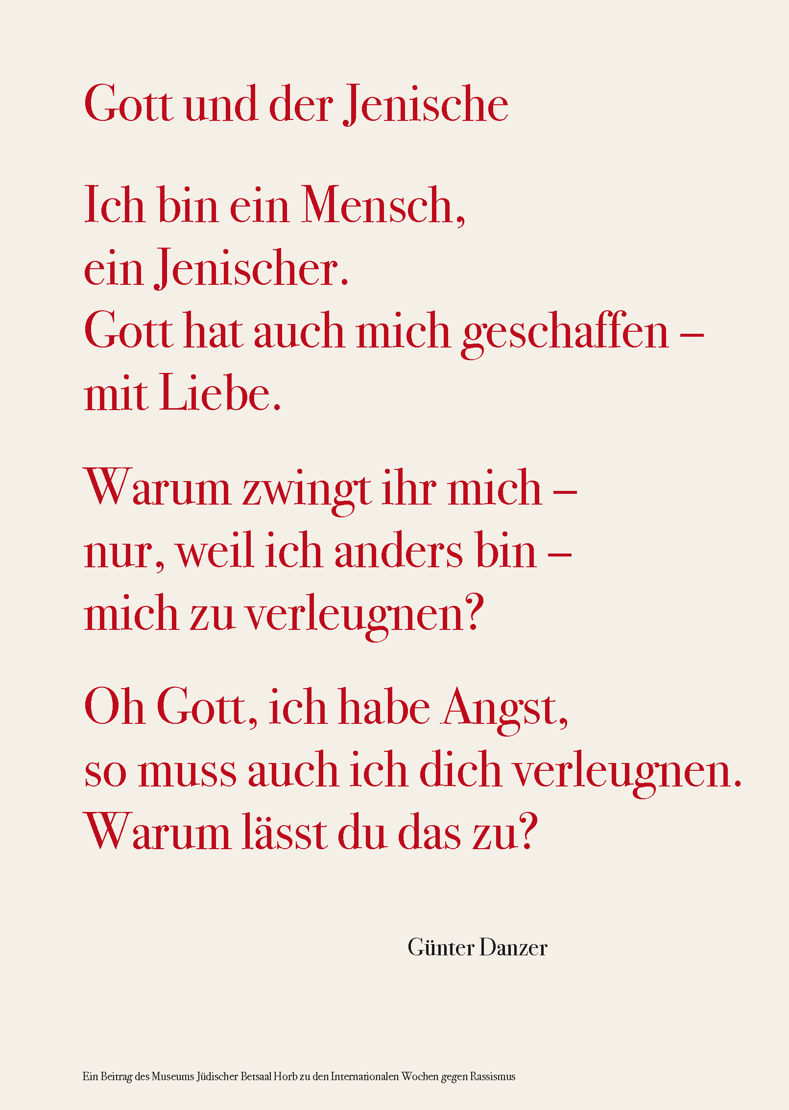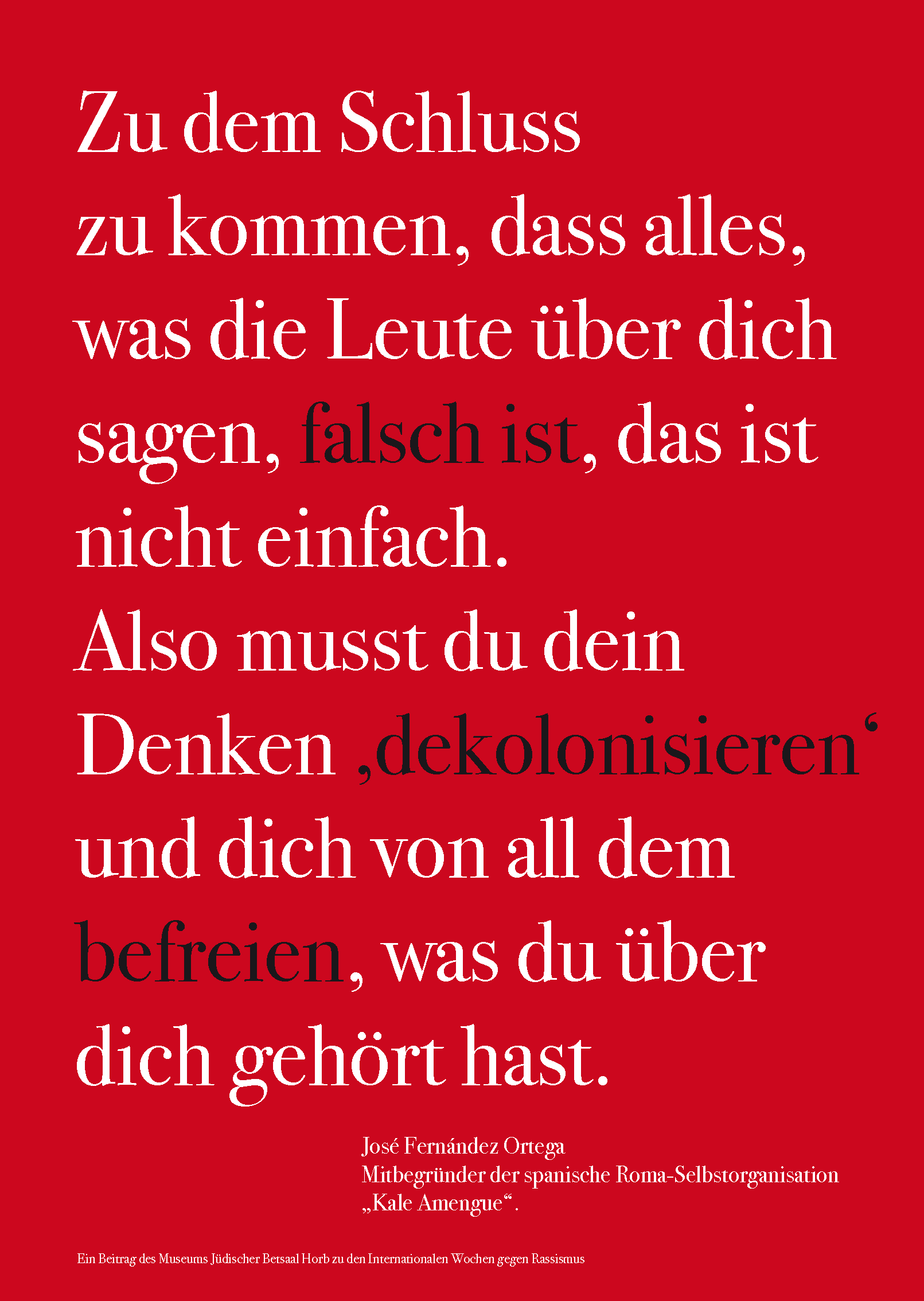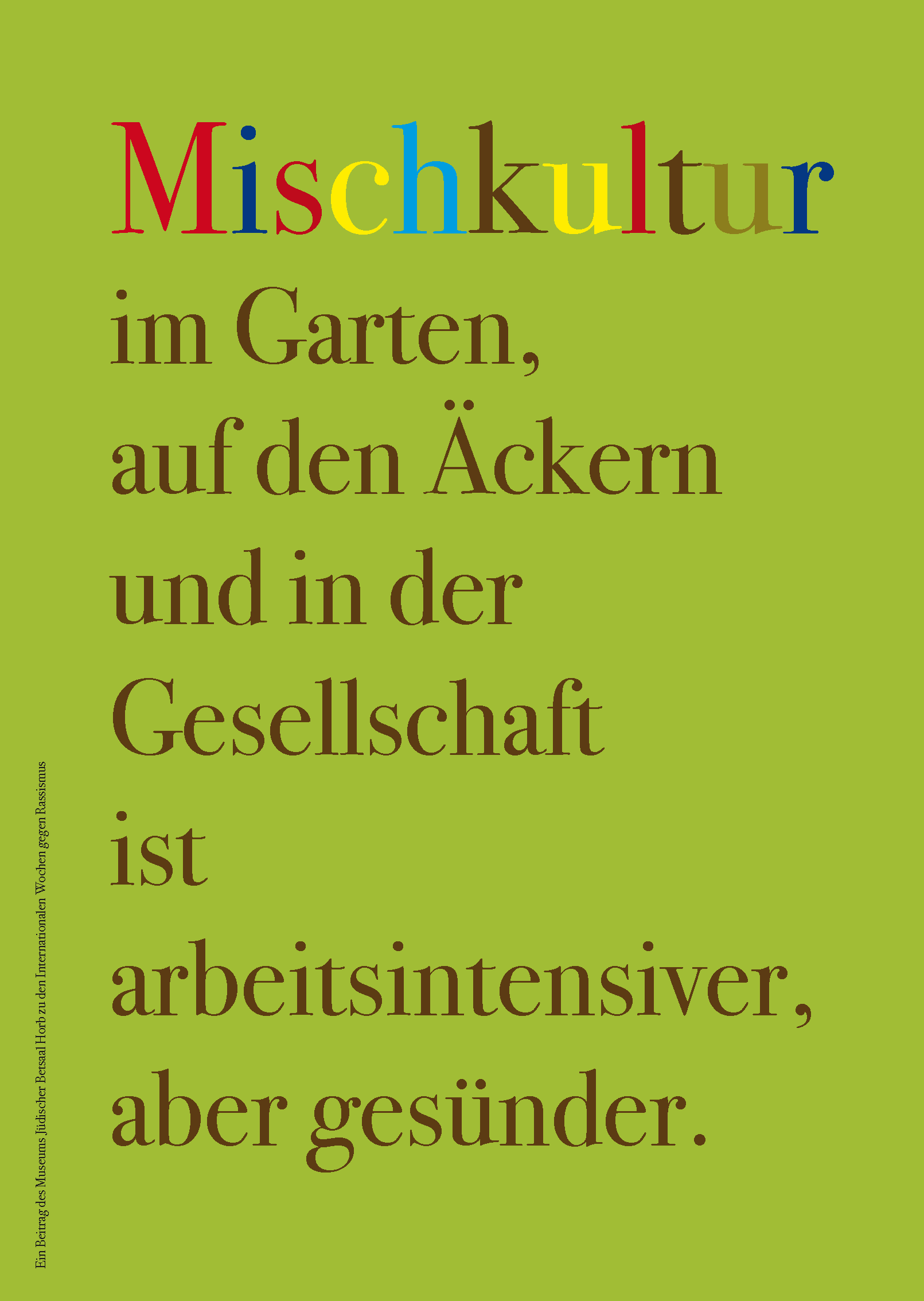 Zu den internationalen Wochen gegen Rassismus vom 15. bis 28. März 2021 entwarf das Team des Museums Jüdischer Betsaal Horb 15 Schriftplakate.