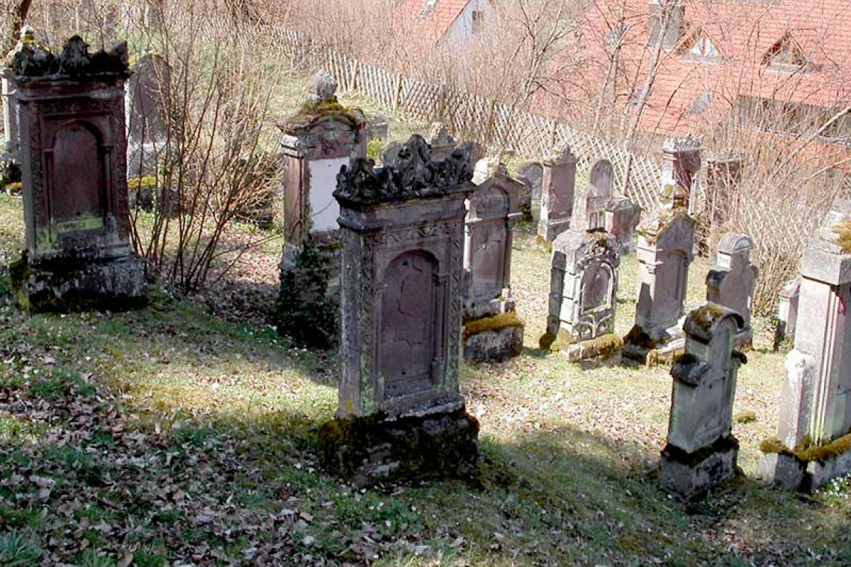 Der Friedhofsplatz etwas oberhalb des Dorfes am Waldrand gelegen, gehörte zunächst dem Freiherrn von Münch, der für jede Beerdigung Geld bekam. 1870 verkaufte er das Grundstück der jüdischen Gemeinde. Es befinden sich über 500 Grabstellen auf dem Friedhof. Viele Grabsteine wurden während der Nazizeit zerstört, umgeworfen, zerbrochen und die Grabplatten herausgebrochen.